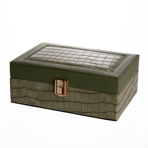 Скринька для прикрас з еко шкіри 10 відділень з дзеркалом 20×14×8 см Зелений HP-5-19GR