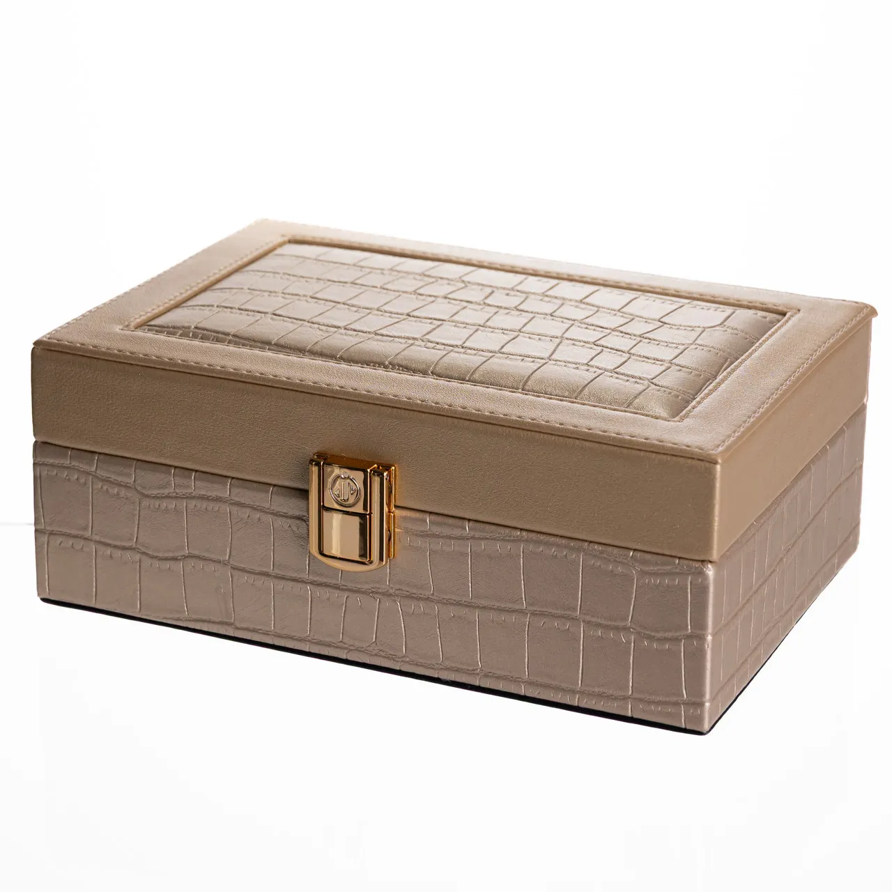 Скринька для прикрас з еко шкіри 10 відділень з дзеркалом 20×14×8 см Золотистий HP-5-19GOLD