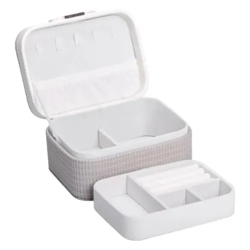 Шкатулка для прикрас з еко-шкіри розміром 15.5×11.5×8.5 см є стильним і практичним органайзером, призначеним для акуратного зберігання різноманітної біжутерії та ювелірних виробів. Модель відзначається компактними розмірами та зручною внутрішньою організацією, що робить її незамінною для домашнього використання та подорожей.