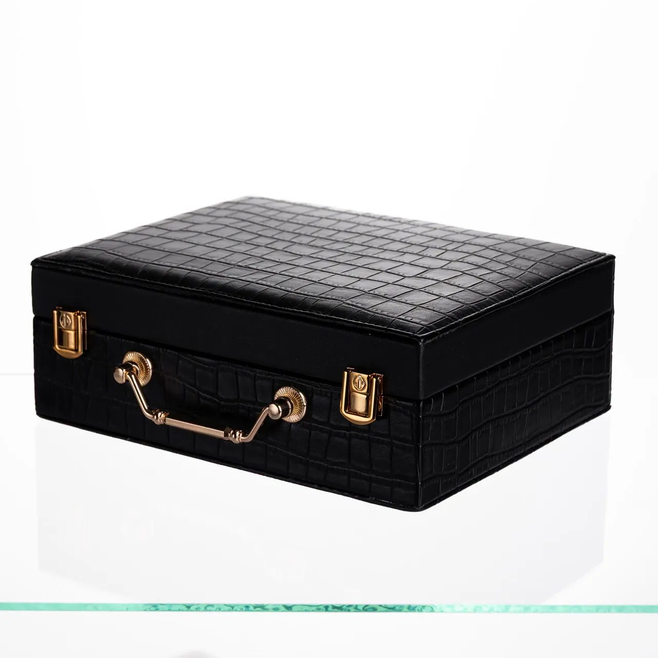 Характеристики "Скринька для прикрас з еко шкіри 19 відділень з дзеркалом 23.5×14×8 см Чорний HP-5-20B"