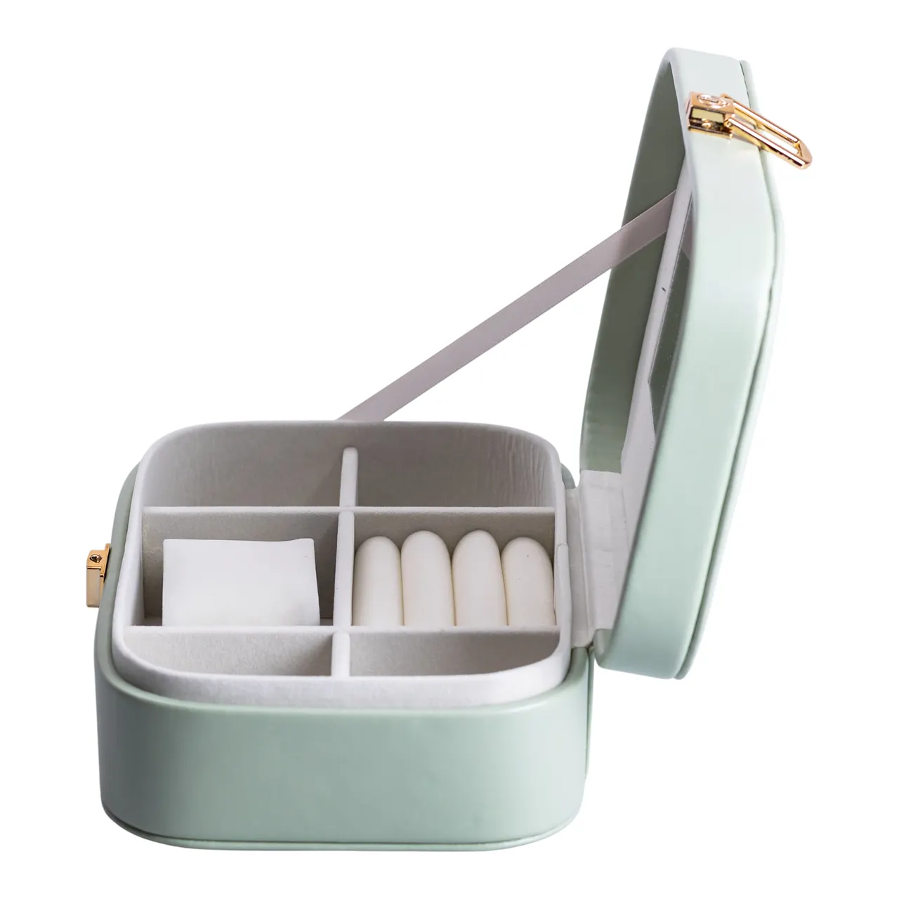 Вбудоване дзеркало суттєво полегшує процес вибору та примірки прикрас. Це важливе доповнення корисне як для домашнього використання, так і в подорожах, дозволяючи швидко оцінити, як поєднуються аксесуари з образом.