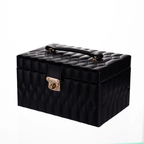 Характеристики "Скринька для прикрас з еко шкіри 3 яруси з дзеркалом органайзер для ювелірних виробів Чорний Yiwu HP-5-17B"