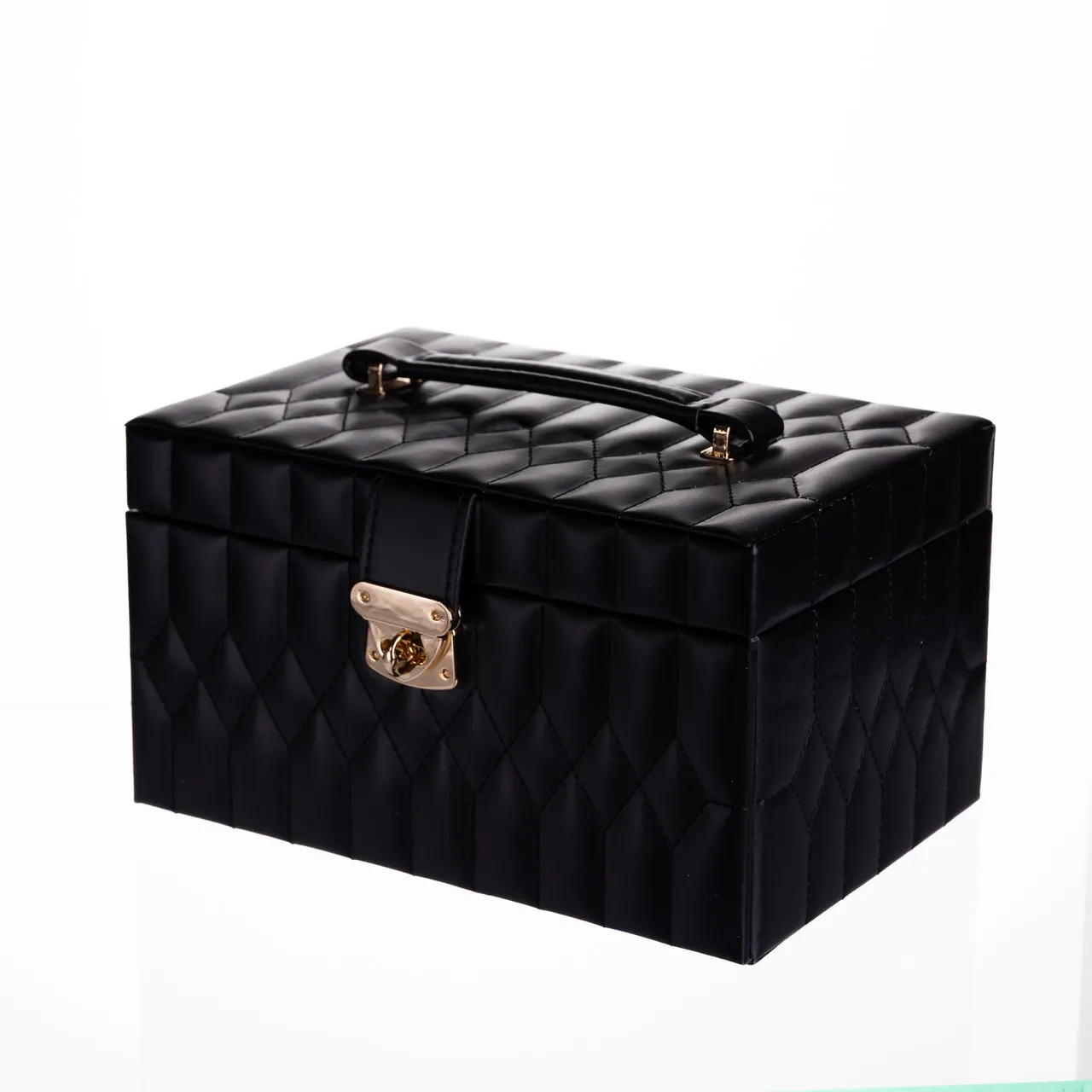 Скринька для прикрас з еко шкіри 3 яруси з дзеркалом органайзер для ювелірних виробів Чорний Yiwu HP-5-17B