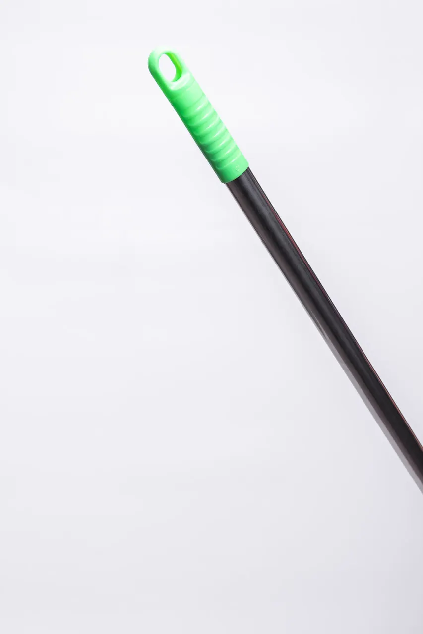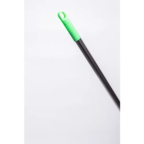 Металева ручка з нержавіючої сталі, посилена пластиковими елементами, забезпечує надійність та довговічність. Особливістю даної моделі є зручна петля для підвішування та можливість вертикального зберігання, що допомагає економити місце і спрощує доступ до швабри у потрібний момент.