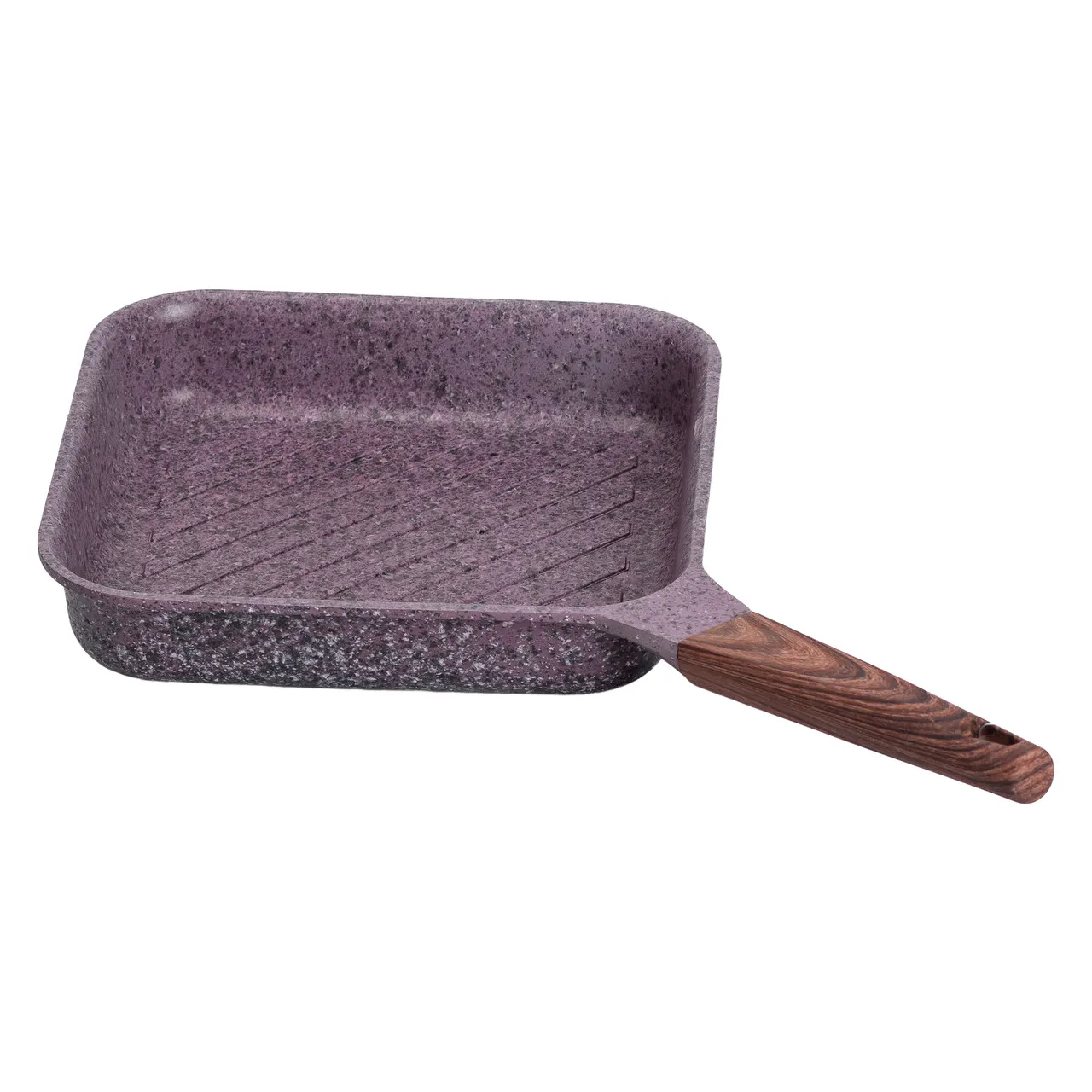 Сковорода-гриль алюмінієва, квадратна, 2,5 літри, з антипригарним покриттям, 24 см, MGC Purple HP-4-443M