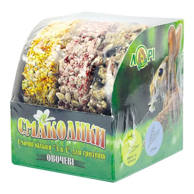 Смаколики для гризунів ОВОЧЕВІ КІЛЬЦЯ Лорі "3в1" забезпечують вихованцям різноманітність у раціоні та задовольняють їх природні інстинкти. Ці ласощі допомагають не тільки підтримувати здоров'я вашого вихованця, але й стимулює його активність.