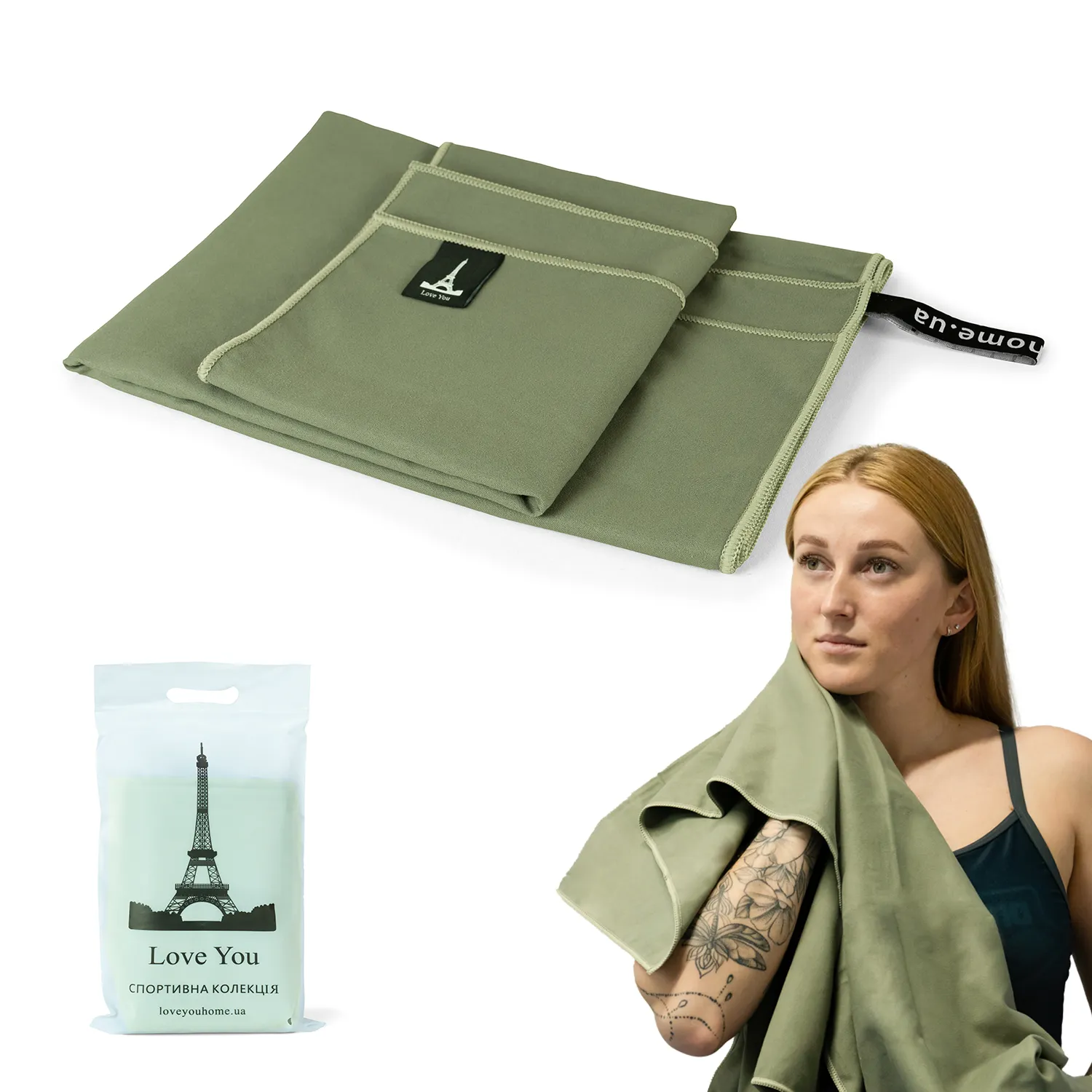 Спортивний рушник Love You з мікрофібри Хакі 70х140