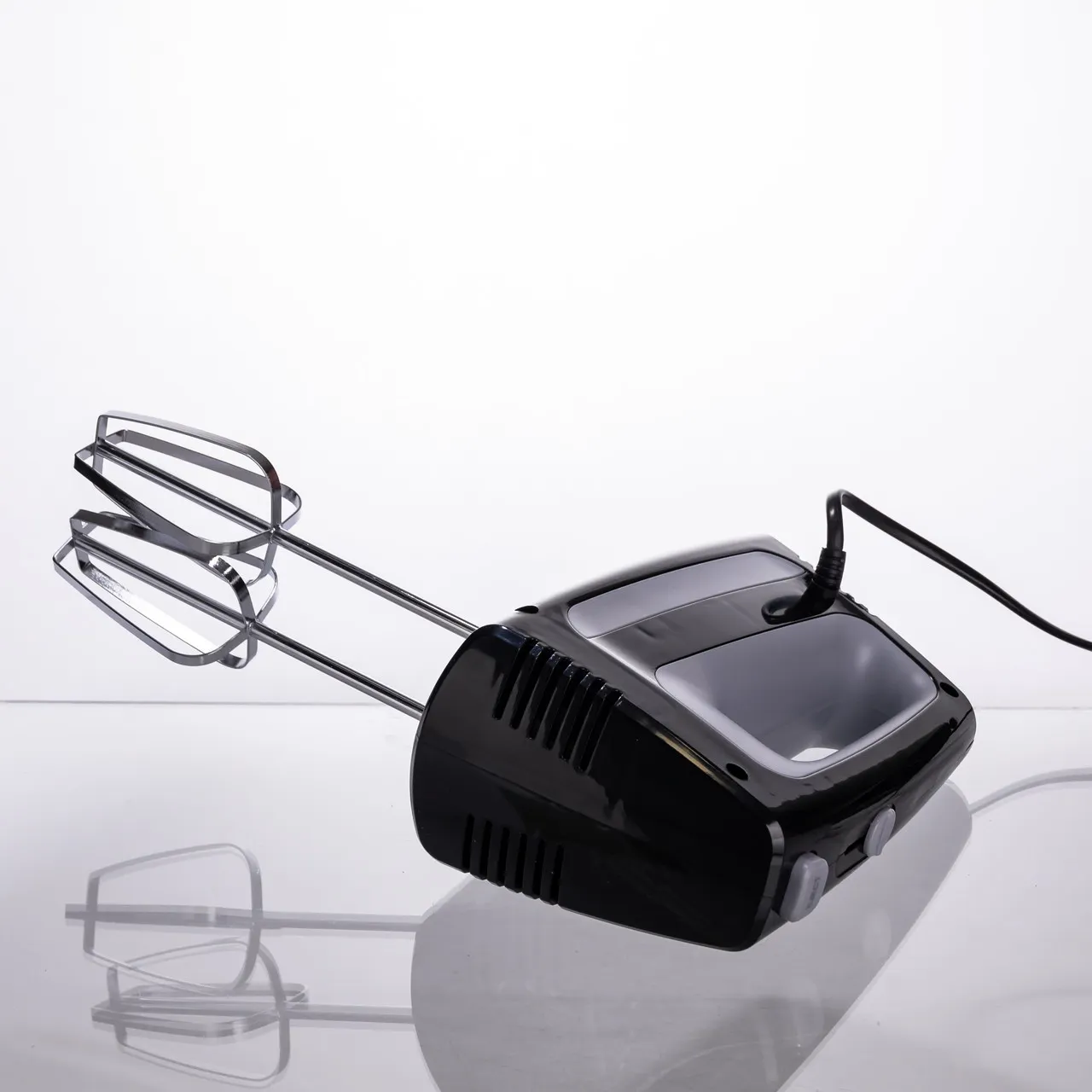 Конструкція міксера виконана із поєднання пластику та металу, при цьому чаша виготовлена з нержавної сталі, що забезпечує тривалий термін служби та легкість у догляді. До комплекту входять дві основні насадки — вінчики для збивання та гачки для замішування тіста, які підходять для різноманітних кулінарних завдань.