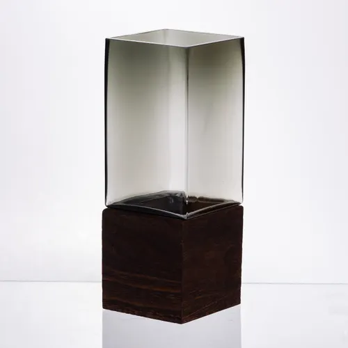 Скляна декоративна ваза квадратна HP-32-8 є поєднанням привабливого дизайну і якісних матеріалів. Верхня частина виконана з товстостінного прозорого скла, що забезпечує міцність і елегантний вигляд. Підстава виготовлена з натурального масиву дерева, що додає тепла і природності загальному стилю виробу.