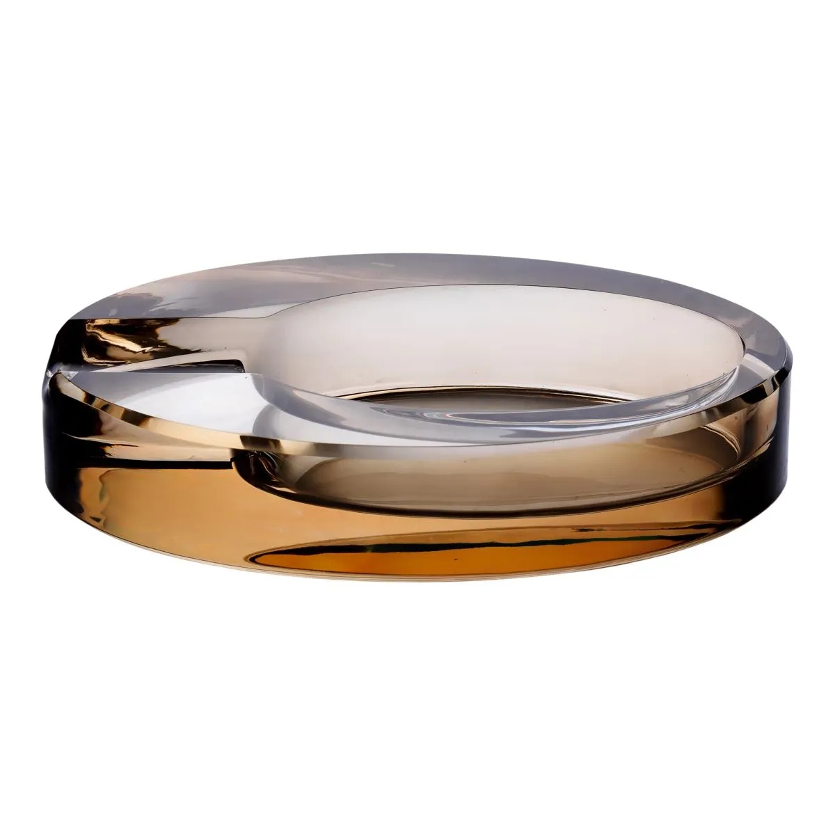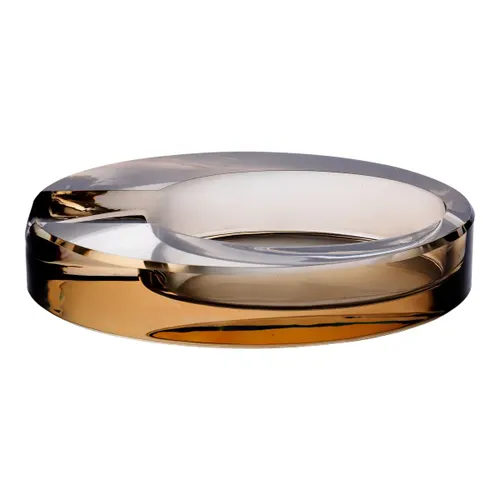 Ця скляна попільничка відзначається поєднанням естетики і функціональності. Її овальна форма та золотистий відтінок вигідно виділяють її серед інших аналогічних виробів на ринку. Якісні матеріали та ретельна обробка забезпечують не лише привабливий зовнішній вигляд, а й довговічність.