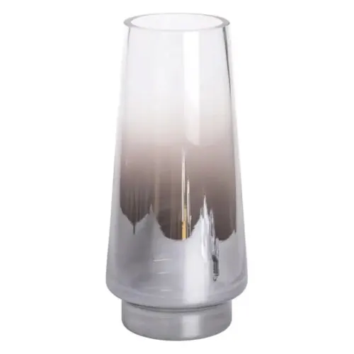Колір виробу — сіра прозора гама, яка підійде до інтер'єру в стилі мінімалізм, скандинавському або класичному. Форма циліндрична, що забезпечує гармонійні лінії та рівномірний розподіл маси букета. Декоративне оформлення відсутнє, що робить вазу універсальною та легко поєднуваною з будь-якими елементами декору.