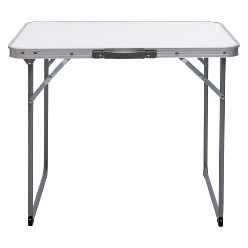 Білий колір стільниці та акуратний прямокутний дизайн роблять виріб універсальним для будь-якого оточення. Матеріал МДФ на поверхні забезпечує гладкість і легкість очищення, а стійкість алюмінієвої рами до корозії гарантує тривалий термін служби, навіть при експлуатації на вулиці.