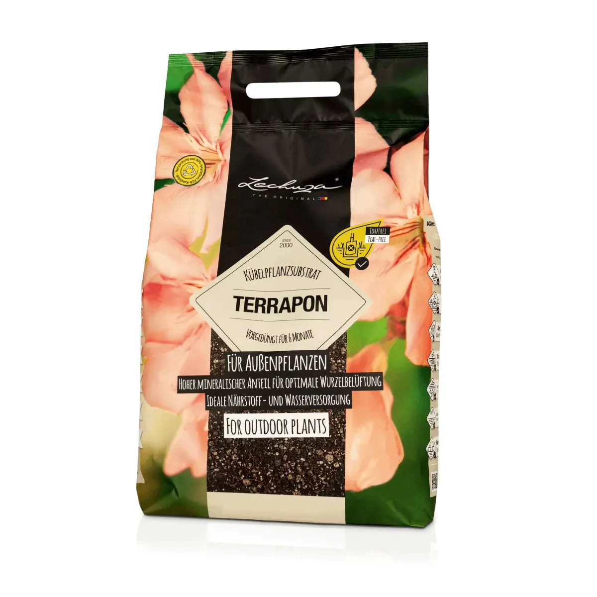Крім того, субстрат попередньо збагачений поживними речовинами, що дозволяє рослинам отримувати необхідну підтримку протягом 6-8 місяців, забезпечуючи безперервний розвиток рослин. Все це робить TERRAPON найкращим вибором для вашого саду або балкона.