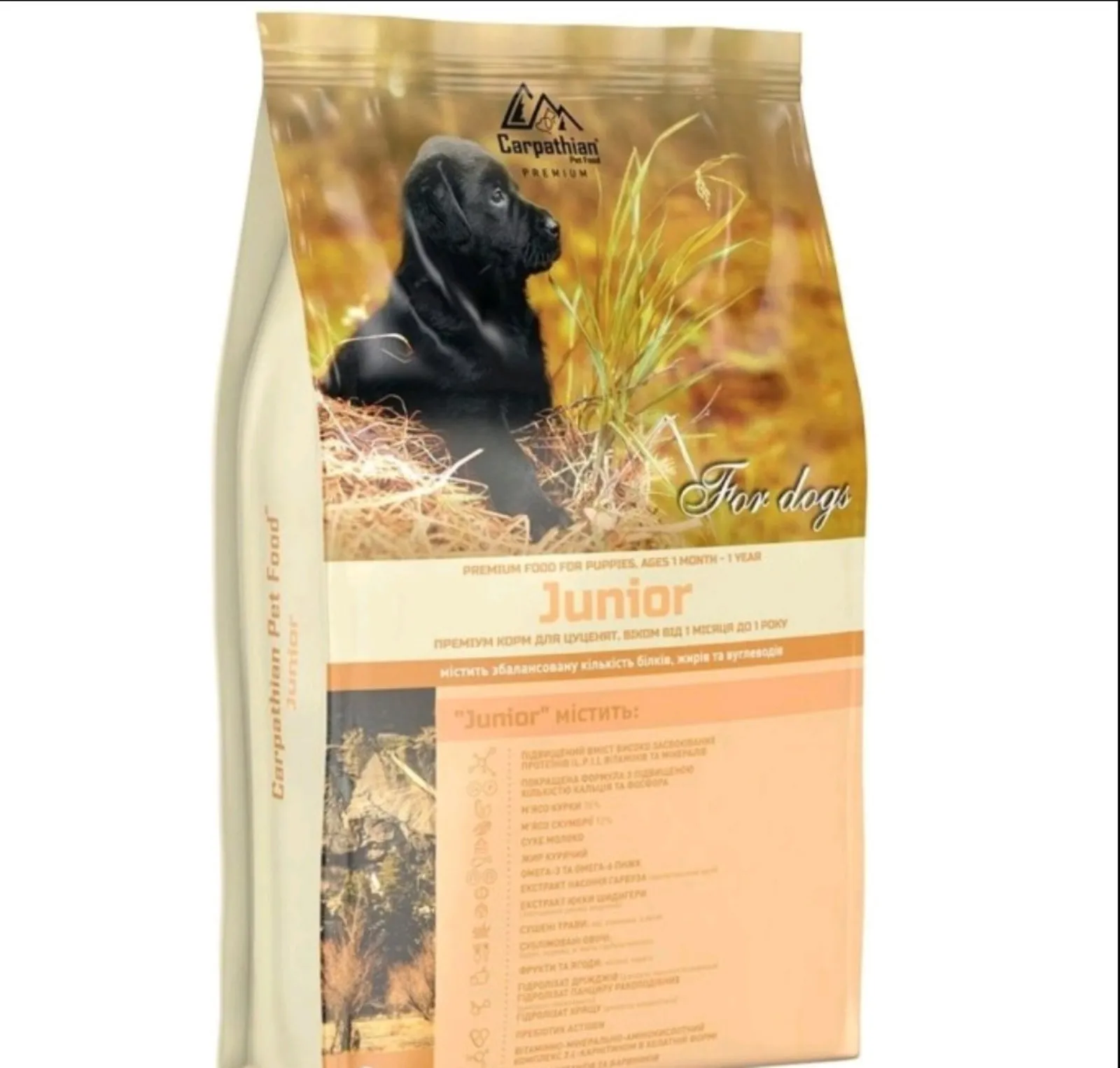 Вибираючи корм для цуценя, враховуйте його індивідуальні потреби та особливості. Сухий корм Carpathian Pet Food "Junior" пропонує оптимальний баланс поживних речовин, гарантуючи, що ваш вихованець буде не тільки здоровим, але й веселим і активним.