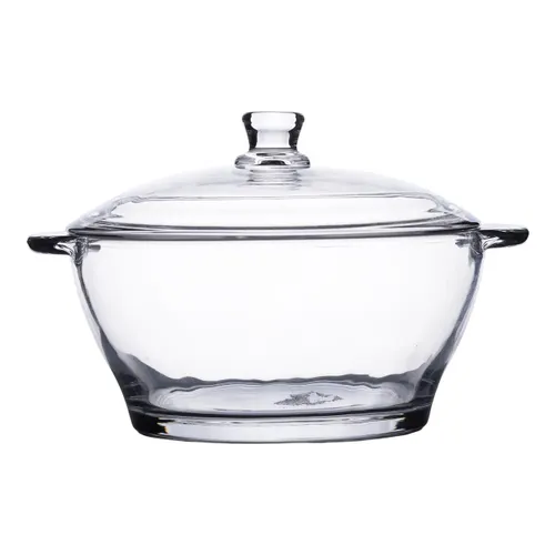 Супниця з кришкою діаметром 15,5 см і об’ємом 1 літр виконана з якісного скла. Цей посуд поєднує в собі класичний дизайн із сучасними технологічними характеристиками, що робить її практичним вибором для щоденного використання та святкових випадків. Скляний корпус супниці прозорий, що дозволяє візуально контролювати процес подачі та споживання страв.