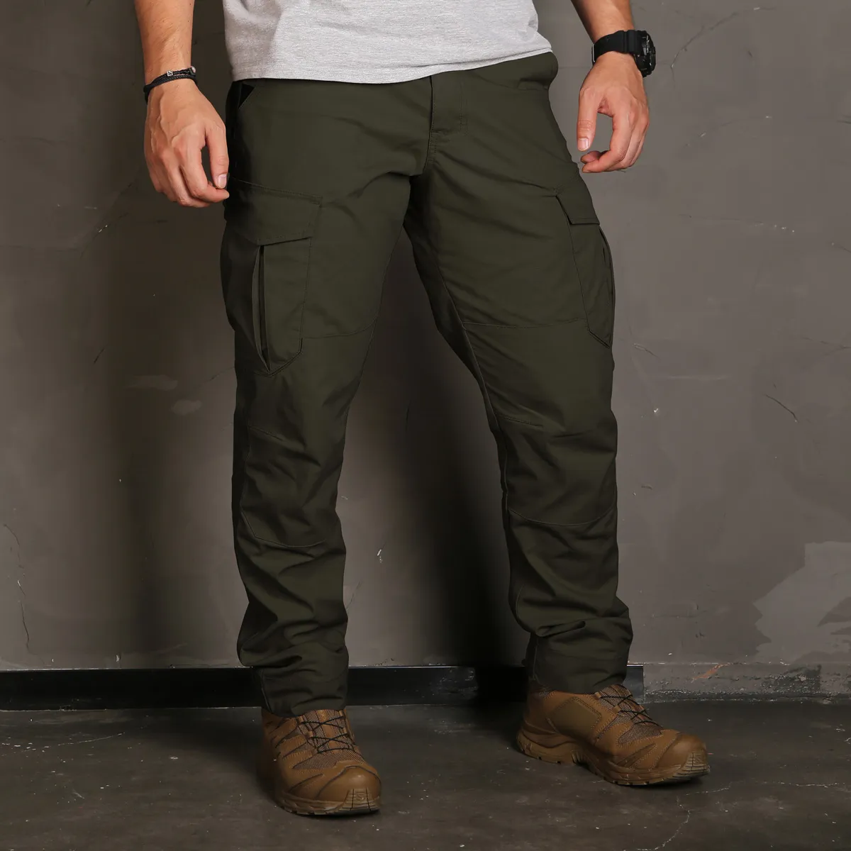 Крім того, ці штани виконані з якісних матеріалів, що складаються на 50% з бавівні та 50% з нейлону, що забезпечує довговічність та стійкість до зношування. Таке поєднання матеріалів також сприяє оптимальній вентиляції та терморегуляції у демісезонних умовах.
