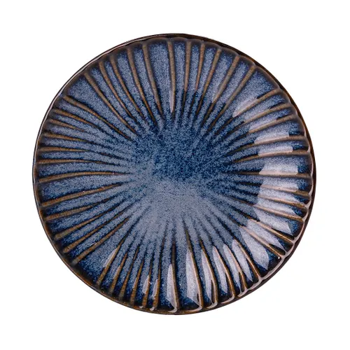 Це посуд призначений для подачі закусок, основних страв і десертів, поєднуючи функціональність та вишуканість. Кругла форма забезпечує зручність сервірування та сумісність з іншими елементами столового сервізу. Колір тарілки — насичений синій, який гармонійно впишеться у різні інтер'єрні рішення і створить атмосферу затишку за обіднім столом.