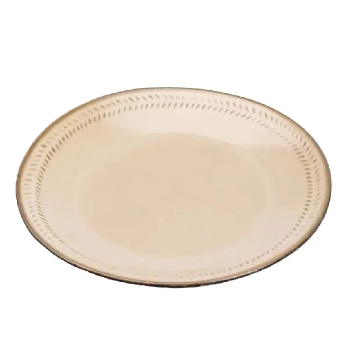 Загальні характеристики круглої керамічної сервірувальної тарілки 22,5 см бежевого кольору HP23378