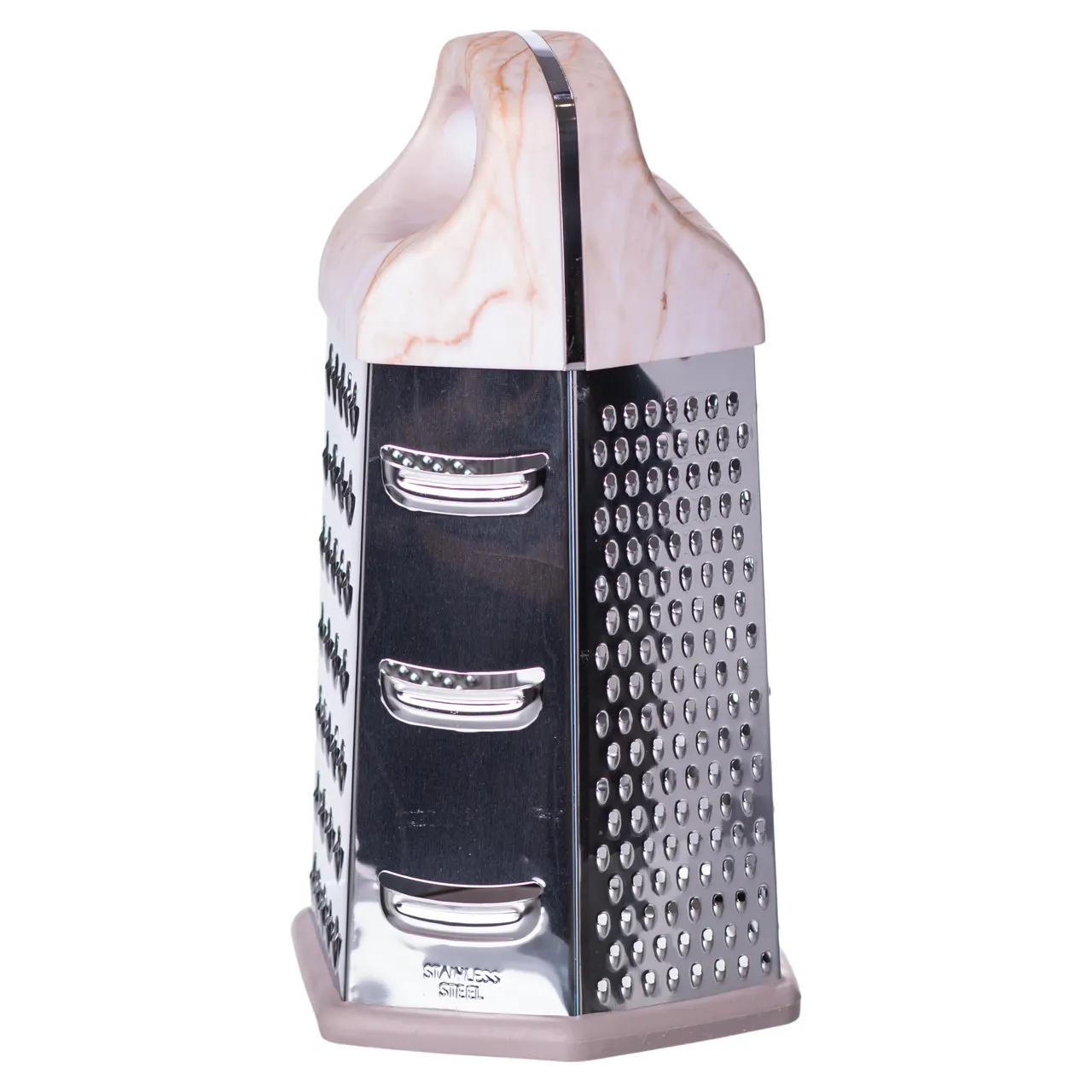 При виборі ручної терки слід звернути увагу на матеріал виготовлення, кількість робочих поверхонь і зручність використання. Цей варіант із нержавної сталі з шістьма робочими гранями забезпечує широкий спектр функцій і довговічність, що робить його оптимальним для щоденного використання.