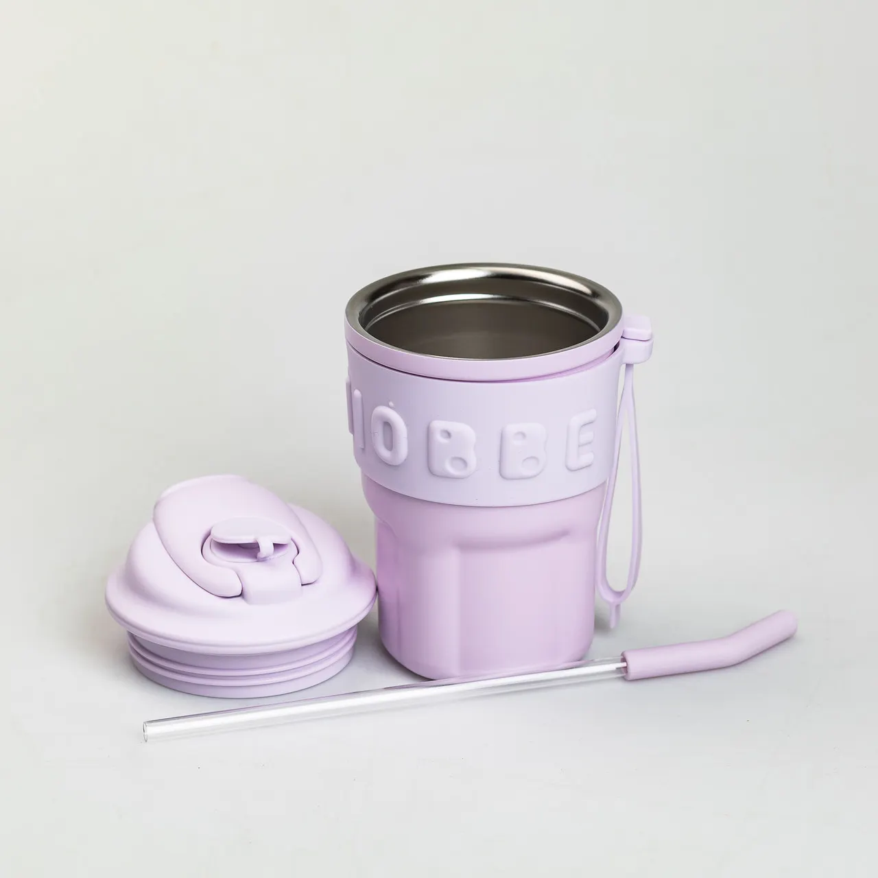 Термочашка Chiobbe з трубочкою та ремінцем 450 мл бузкова HP-14-18V