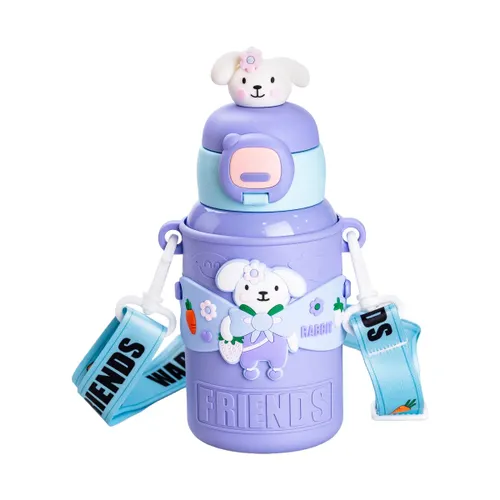 Термос поїльник з трубочкою з ремінцем та силіконовим чохлом дитячий 450 (мл) Фіолетовий HP18308V