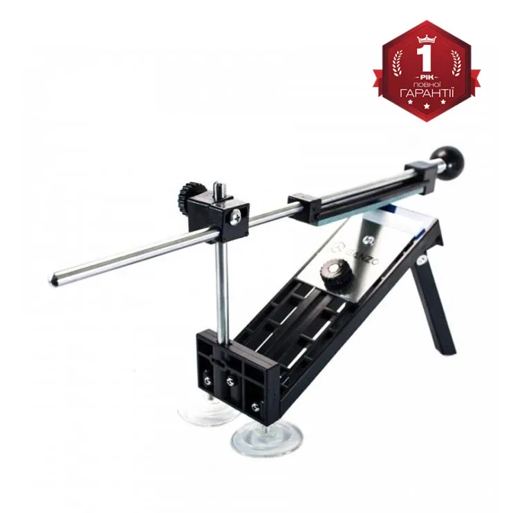 Точильний верстат оснащений основою з фіксаторами та напрямними, набором брусків різної зернистості та чохлом для зберігання всіх деталей. Щоб використовувати, достатньо встановити верстат на робочу поверхню та зафіксувати за допомогою присосок, виставивши напрямну під потрібним кутом.