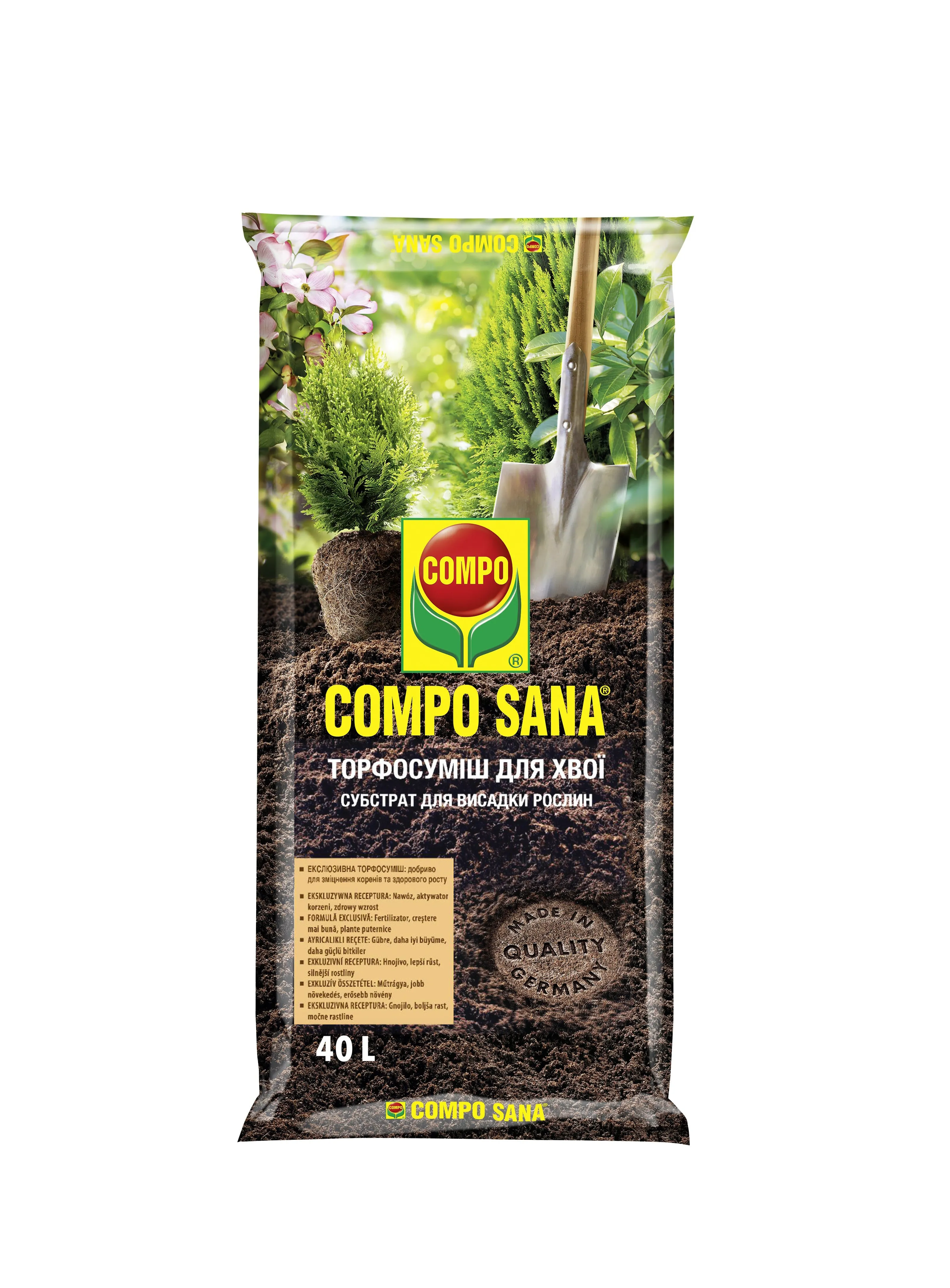 Характеристики "Торфосуміш для усіх видів хвойних рослин COMPO SANA® 40л"