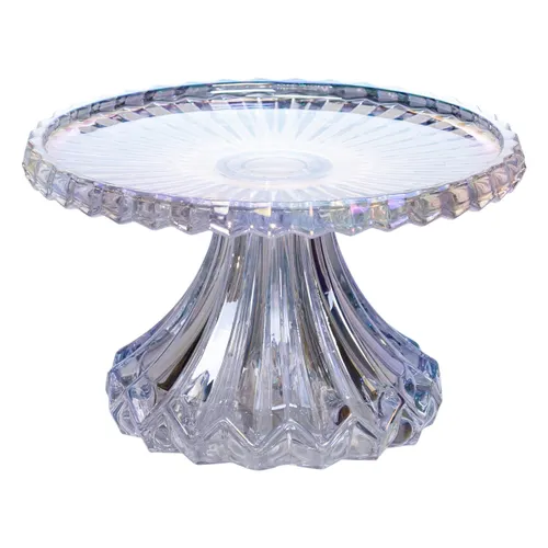 Тортівниця на ніжці — це практична й вишукана підставка, виготовлена з прозорого скла з імітацією кришталевого візерунка, який створює ефект променистого сяйва. Кругла форма та рельєфний край забезпечують зручне й гарне розміщення тортів, капкейків, тістечок та інших десертів. Піднята основа висотою 10 см не лише підвищує естетичну привабливість подачі, а й забезпечує стійкість виробу на столі.