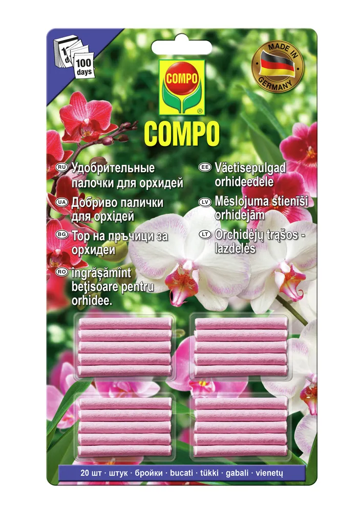 З добривами в паличках COMPO ваш догляд за рослинами стає простішим. Екологічна формула робить їх безпечними для використання, а тривалий ефект дозволить вам заощадити час, який витрачається на догляд за орхідеями.