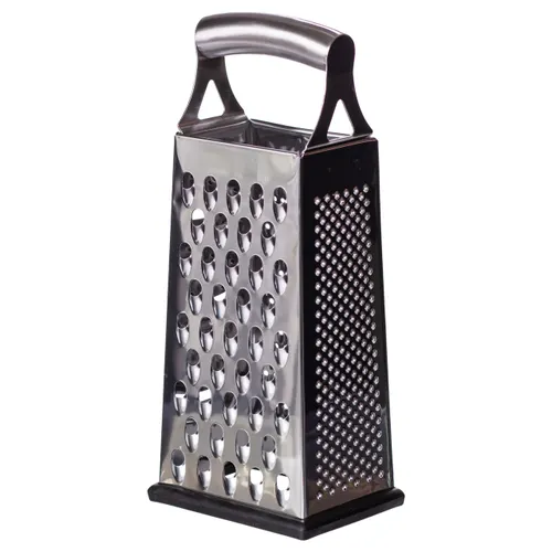 Наскільки безпечна терка при використанні? Металева ручка і протиковзка основа забезпечують надійний хват і стійкість, знижуючи ризик ковзання і травм. Важливо дотримуватись базових заходів безпеки при натиранні продуктів.