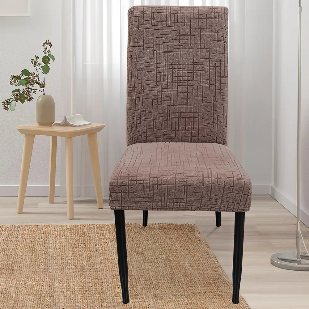 Цей коричневий чохол підходить для стільців із висотою спинки від 45 до 60 см і шириною сидіння від 35 до 42 см, що робить його універсальним рішенням для більшості стандартних моделей меблів. Матеріал приємний на дотик і водночас міцний, що гарантує тривалий термін служби навіть при інтенсивному використанні.