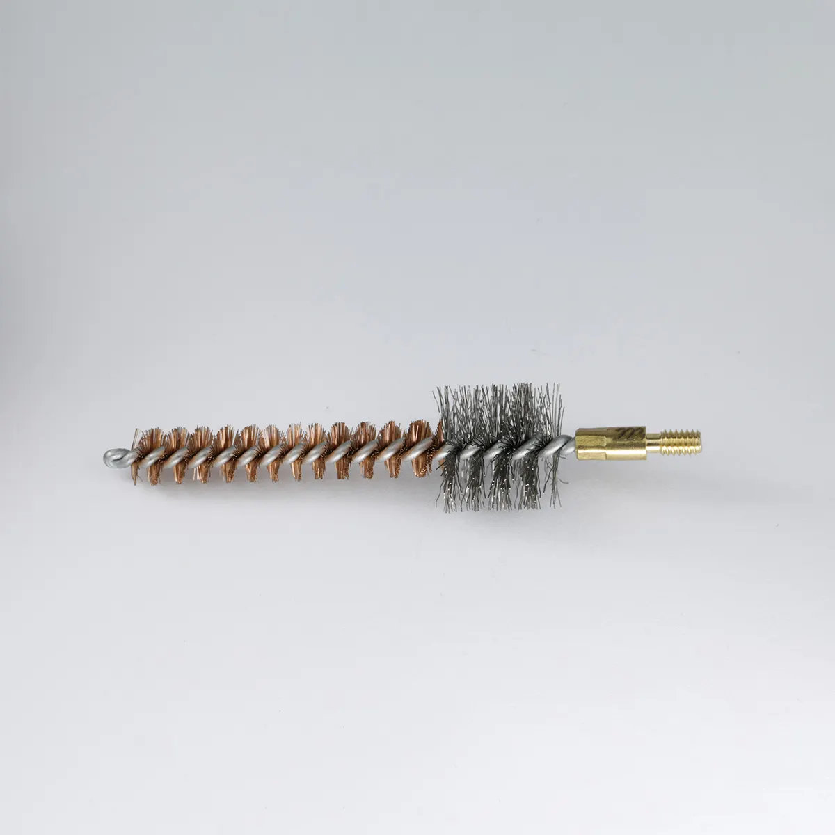 Основою виробу служить латунний корпус, який відрізняється високою стійкістю до зносу та корозії. Латунь також має хороші антибактеріальні властивості, що допомагає запобігати розвитку іржі та інших окислювальних процесів всередині патронника. Жорстка щетина йоржа з обох сторін сприяє ретельному видаленню забруднень навіть у важкодоступних місцях каналу.