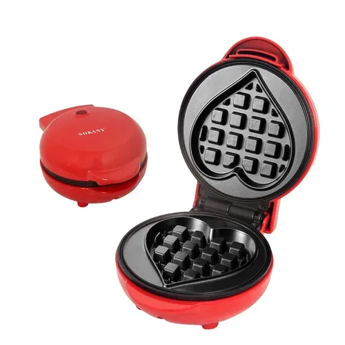 Вафельниця для бельгійських вафель Sokany SK-BBQ-849 потужністю 550 Вт є зручним і практичним пристроєм для домашнього використання. Вона дозволяє швидко приготувати одну порцію пишних об'ємних вафель у формі серця з хрусткою скоринкою та ніжною серединкою. Корпус пристрою виконаний з пластику червоного глянсового кольору, що надає кухні яскравий акцент.