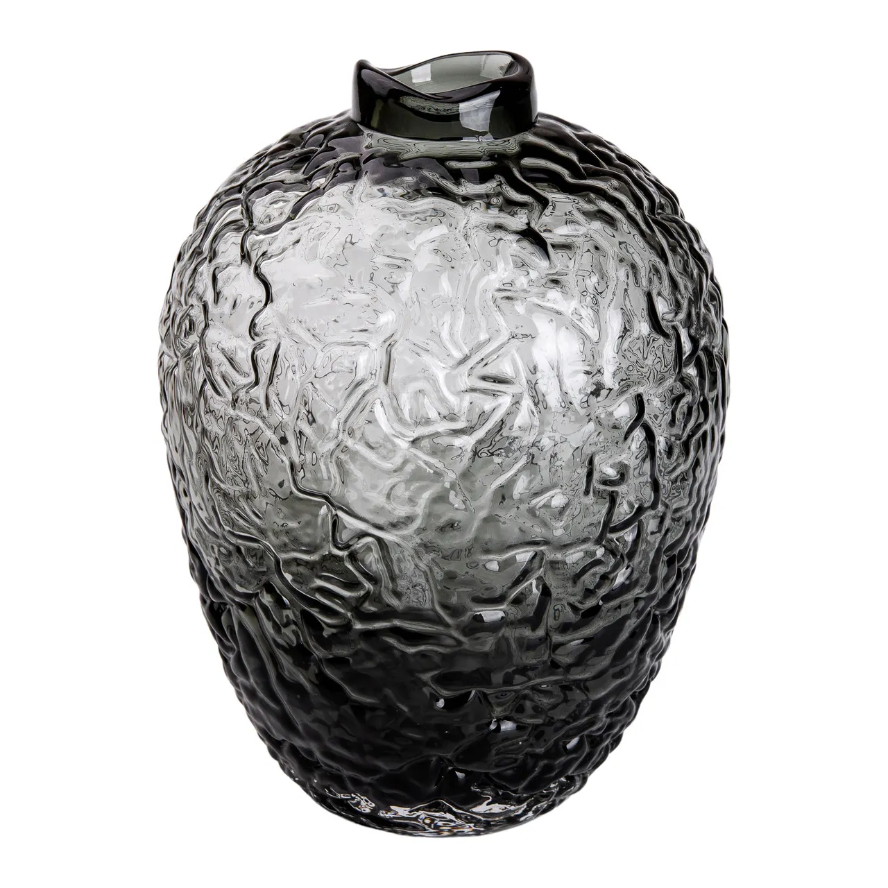 Представлена декоративна ваза для квітів виготовлена з якісного скла і має висоту 30 см. Унікальний сірий відтінок та кругла форма надають виробу стильний і сучасний вигляд, який легко впишеться в будь-який інтер'єр. Рифлена поверхня додає об'єму і дозволяє вазі виглядати об'ємно та цікаво візуально.