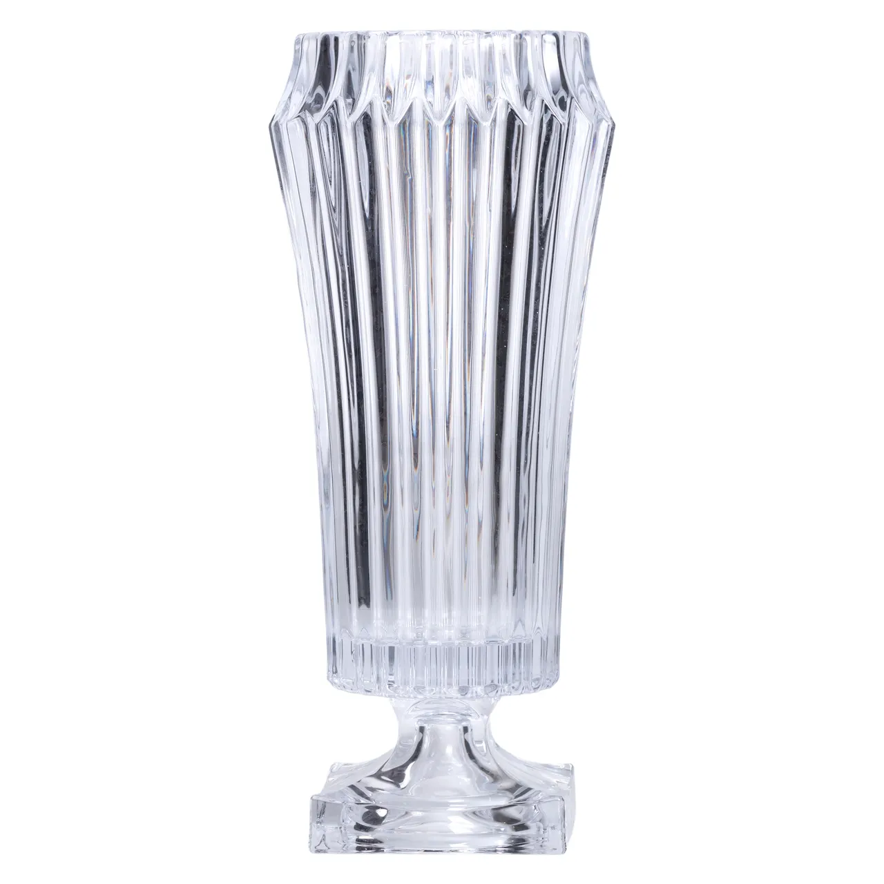Ключові параметри цієї вази включають висоту 34,5 см, ширину та нижній діаметр 11 см, а також глибину 25 см. Матеріал виготовлення — міцне скло, що відзначається прозорістю та гладкою поверхнею. Об’єм ємності становить 1,8 літра, що оптимально для розміщення квіткових композицій різних розмірів.