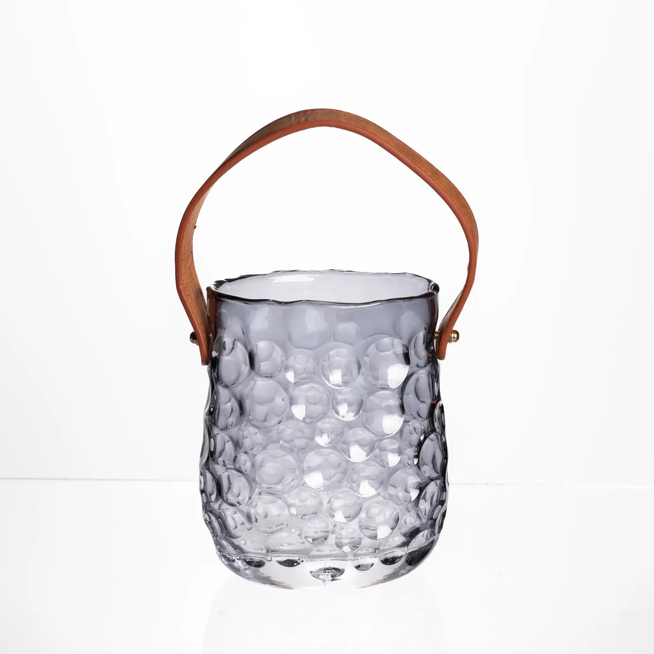 Ваза-сумочка з ручкою 11,5×7,5×15 см 800 мл Сірий HP-19-153-2 являє собою оригінальний предмет декору, виконаний з фактурного скла з рельєфом, що нагадує бульбашкову поверхню. Таке оформлення створює цікаву гру світла на поверхні, роблячи вазу помітним акцентом у будь-якому інтер'єрі. Її універсальний дизайн дозволяє використовувати виріб як для свіжих квітів, так і для сухоцвітів, а також як самостійний декоративний елемент.
