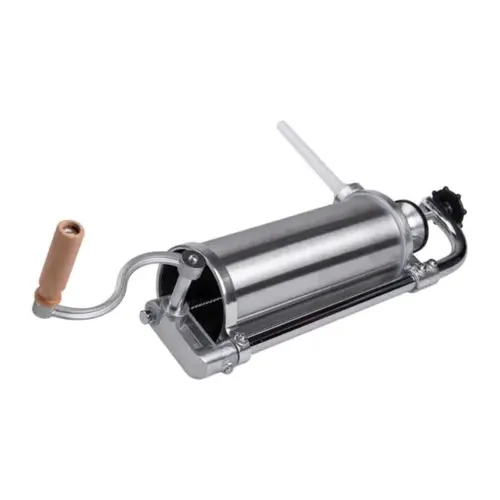 Вертикальний шприц для ковбаси являє собою надійний пристрій, спеціально розроблений для зручного та якісного приготування домашніх ковбас і інших м'ясних виробів. Його конструкція виконана з міцної нержавіючої сталі, що забезпечує довговічність і стійкість до корозії при регулярному використанні. Об'єм шприца становить 2.5 літра, що дозволяє працювати з достатньою кількістю м'ясної маси за один цикл заповнення.
