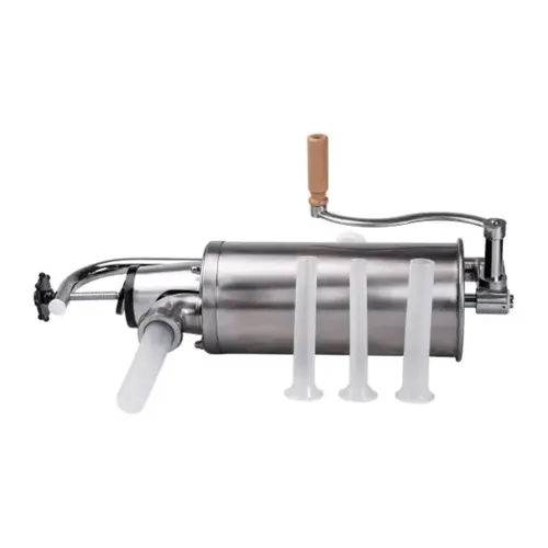 Вертикальний шприц для ковбаси об'ємом 3 літри виготовлений з високоякісної нержавіючої сталі, що гарантує довговічність і гігієнічність використання. Завдяки вертикальному розташуванню циліндра процес наповнення м'ясної оболонки стає більш ергономічним, а сам продукт виходить рівномірним і акуратним.