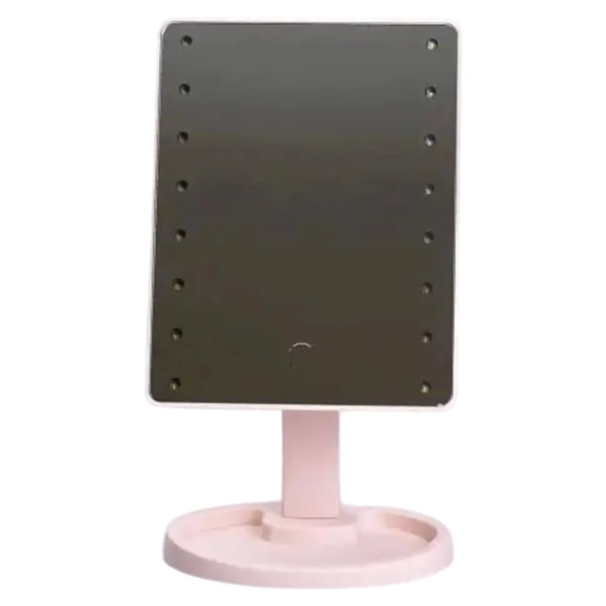 Характеристики "Дзеркало настільне косметичне для макіяжу 21х16 см дзеркало прямокутне на підставці 16 LED Рожеве HP-10-3AP"
