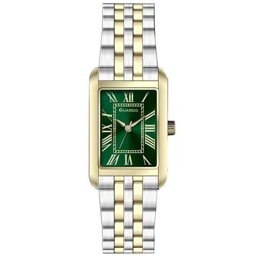 Жіночі годинники Guardo 012796-3 являють собою гармонійне поєднання класичного дизайну та сучасної функціональності. Корпус із нержавної сталі сріблястого кольору має прямокутну форму з розмірами 35 х 20 х 8 мм, що додає виробу строгий та елегантний зовнішній вигляд. Циферблат із римськими цифрами забезпечує хорошу читабельність і підкресленість стилю.