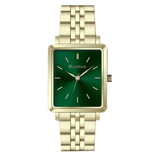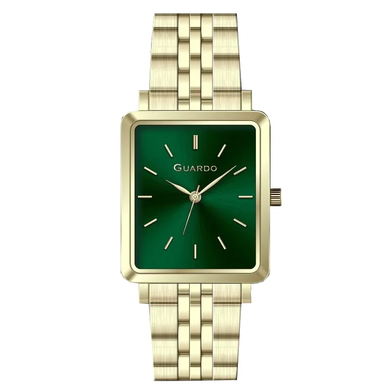 Годинники GUARDO 012803-2 представляють собою стильний та функціональний аксесуар, створений з урахуванням вимог сучасної жінки. Квадратний корпус із нержавної сталі вирізняється міцністю та елегантністю, а золотистий відтінок надає годинникам вишуканість і візуальний ефект розкоші.