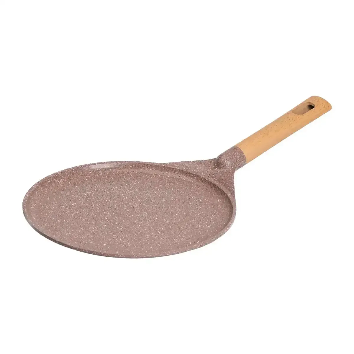 Характеристики "Алюминиевая блинная сковорода с мраморным антипригарным покрытием Ø 28 см, толстое дно MGC кофейного цвета HP-4-430CO"