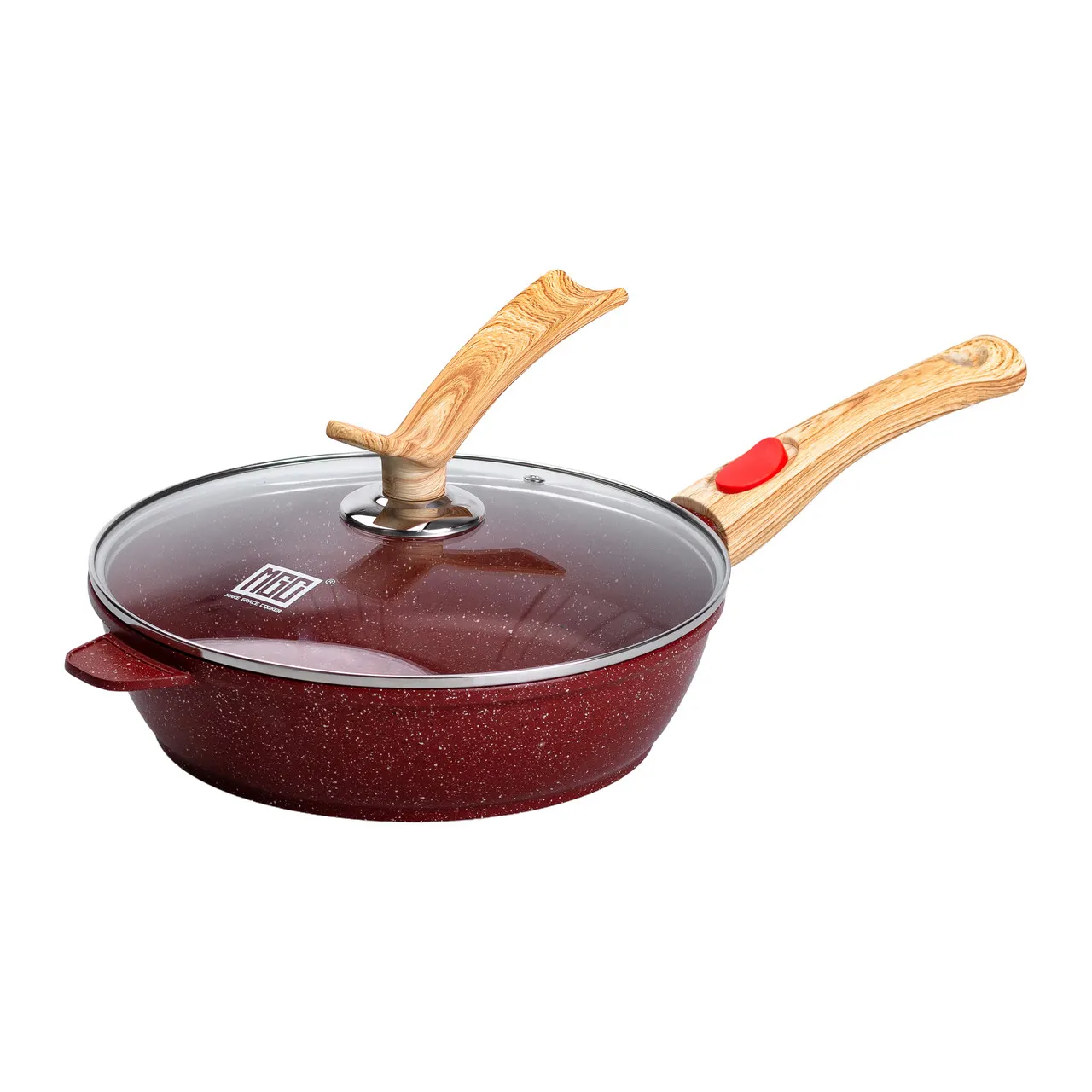 Характеристики "Алюминиевая глубокая сковорода (2,8 л) со стеклянной крышкой Ø 26 см Красный MGC HP-4-464R"