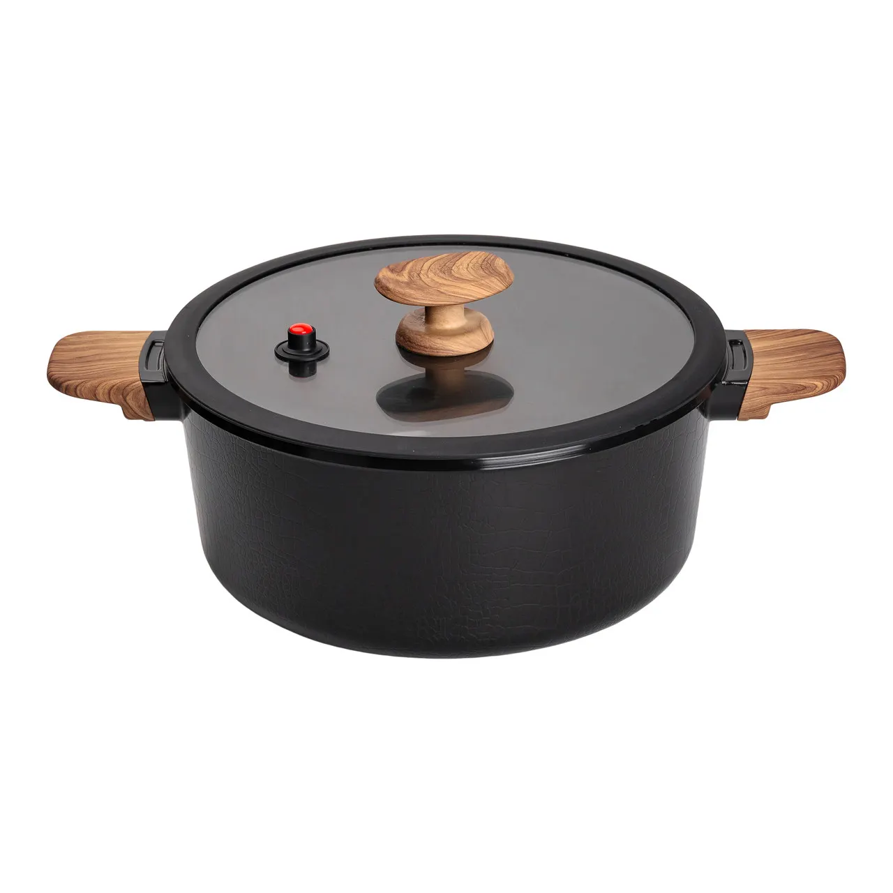 Литые цельнолитые ручки из бакелита устойчивы к нагреву и обеспечивают безопасное использование, предотвращая ожоги. Крышка из жаропрочного стекла позволяет наблюдать за процессом приготовления без необходимости открывать посуду и терять тепло.
