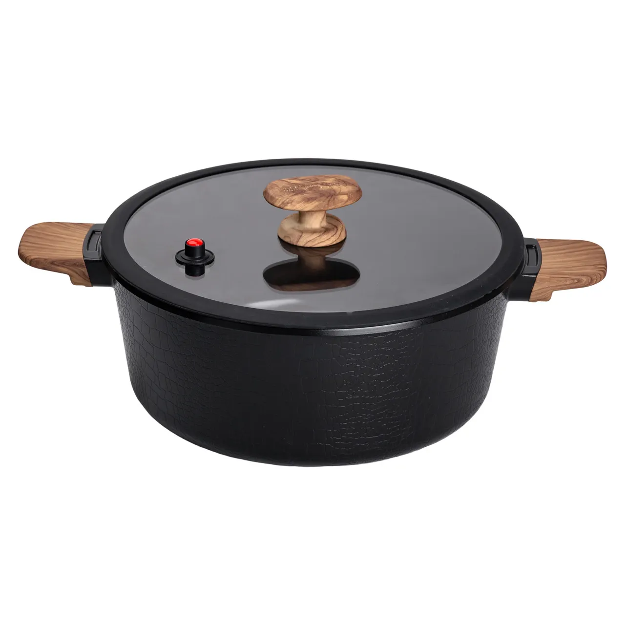 Особенностью этой кастрюли является премиальное многослойное дно, которое значительно улучшает процесс теплопередачи и предотвращает преждевременный износ. Использование жаропрочного стекла в крышке с отверстием для пара снижает риск выброса содержимого и позволяет следить за процессом без необходимости снимать крышку.