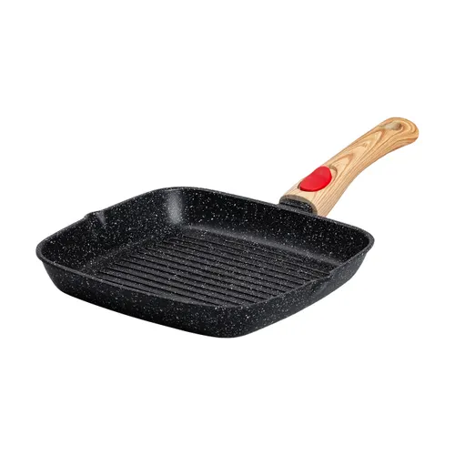 Алюминиевая сковорода-гриль 24 см со стеклянной крышкой, квадратная, черная MGC HP-4-461B
