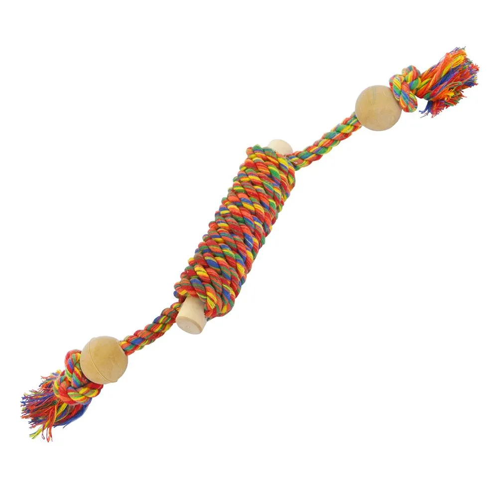 Апортировка ТМ Лори - універсальний собачий апорт, який складається з дерев'яних, бавовняних та гумових елементів. Аксесуар має суцільну дерев'яну основу в центрі, а також два дерев'яних кульки з боків, зв'язані переплетенням різнокольорових бавовняних ниток.