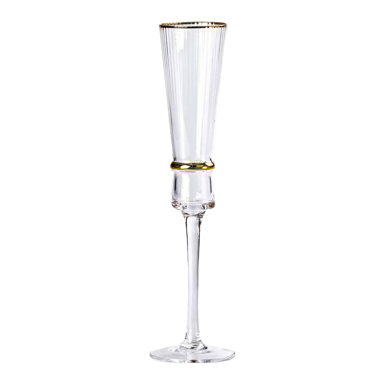 Набор бокалов для шампанского HP-16-8 включает 6 стильных бокалов объемом 200 мл каждый. Эти бокалы изготовлены из прозрачного стекла высокого качества, что позволяет полностью раскрыть визуальные свойства игристых напитков, подчеркивая их цвет и насыщенность. Высокая форма емкости и аккуратное оформление золотым ободком создают изысканный и праздничный внешний вид, подходящий для любого торжества.