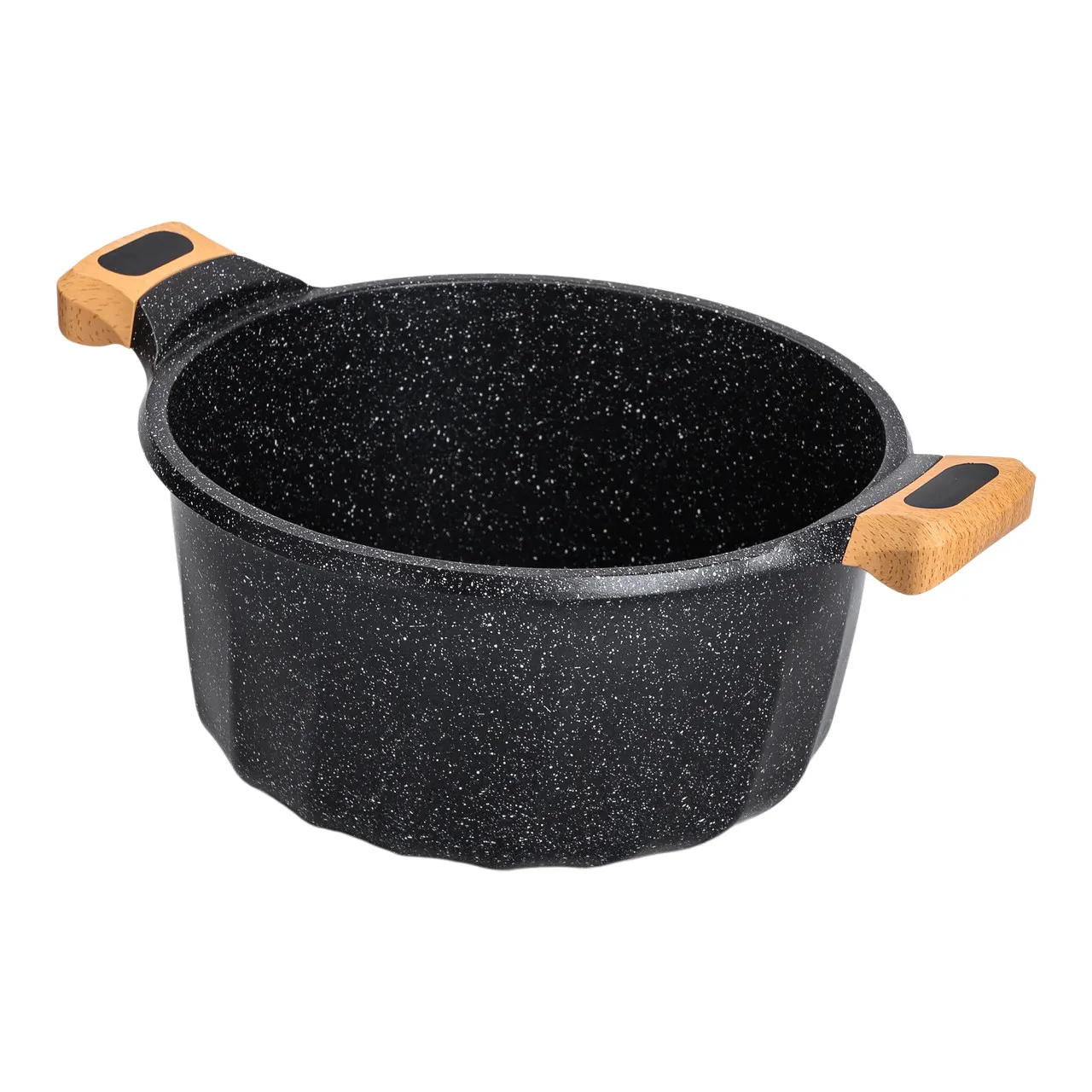 Толстое литое дно гарантирует эффективную теплопередачу, что снижает риск пригорания и обеспечивает равномерное приготовление. Кастрюля подходит для всех видов плит: газовых, электрических и индукционных, что делает ее универсальной и практичной в разных условиях.