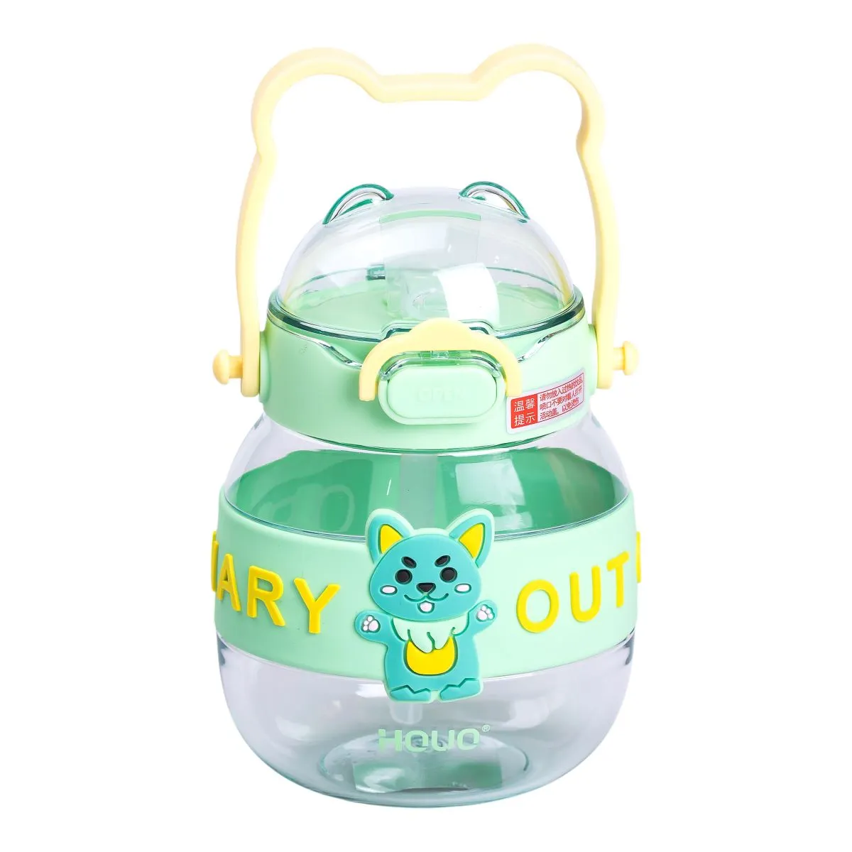 Бутылка для воды детская с трубочкой 580 мл с ручкой и ремешком Зеленая HP-14-37GR